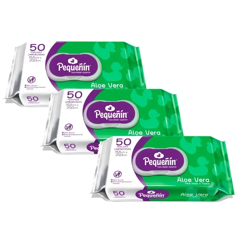 O Kit com 150 Toalhas Umedecidas Pequenin Aloe Vera oferece